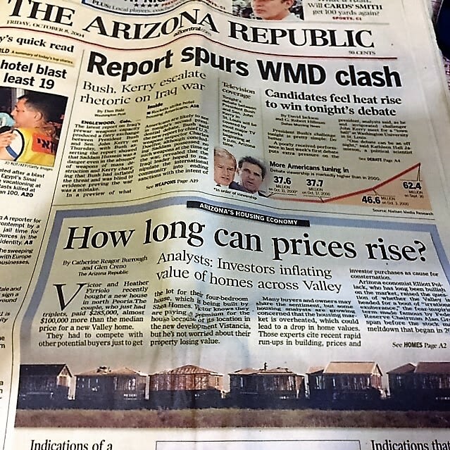 My immediate reaction is“ No. This is not going to turn into a housing recession or a bubble.” This 2004 Arizona Republic begged the question, “How long can prices rise.”